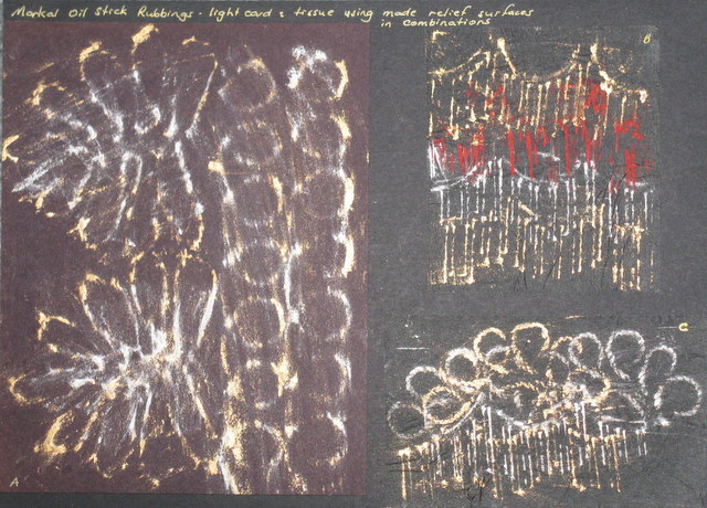 dyed tissue paper. I enjoyed this exercise much more than the rubbings and