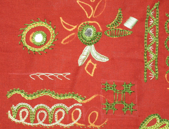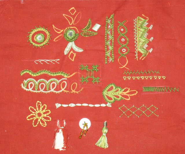 Spot sampler of traditional Indian embroidery stitches. Techniques from