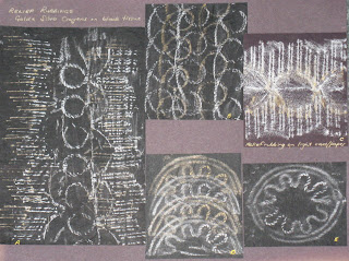 Sheets 9 - 11 Sgraffitto - Layers of crayon with designs scratched through the layers using the blunt